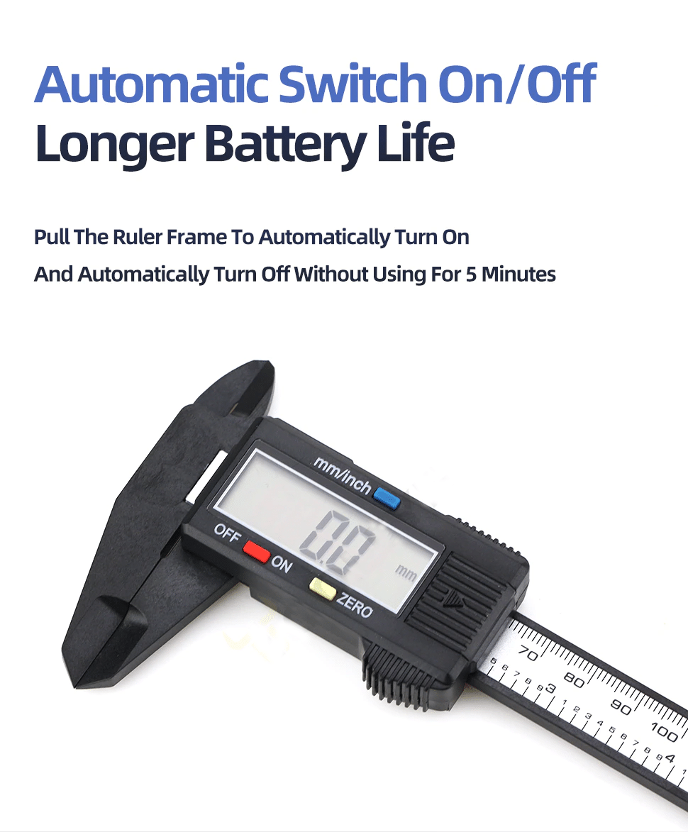 2. Digital caliper is well made and easy to use. Reads out resolution in inches or in millimeters. There's an on/off switch, you can set the numbers to zero to clear the screen and start a new measurement, ideal for different measuring needs. Perfect for daily used, house, car, project, wood etc.