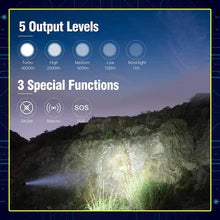 Features 5 Modes (High - Medium - Low - SOS - Strobe)