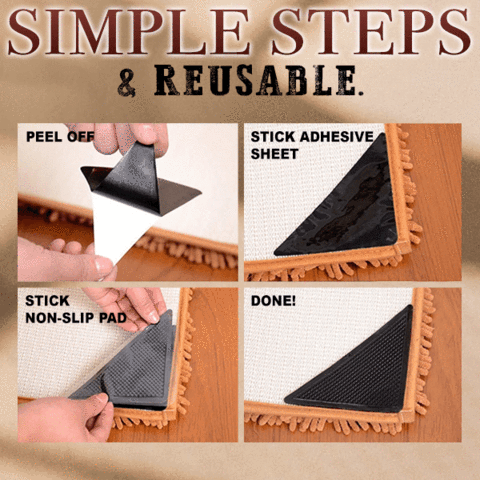 ENSURE YOUR SAFETY: Made of non-slip silicone gel pads in a triangular shape, it fits perfectly on the corners of the mat. Strong tack keeps rugs firmly in place and flat.