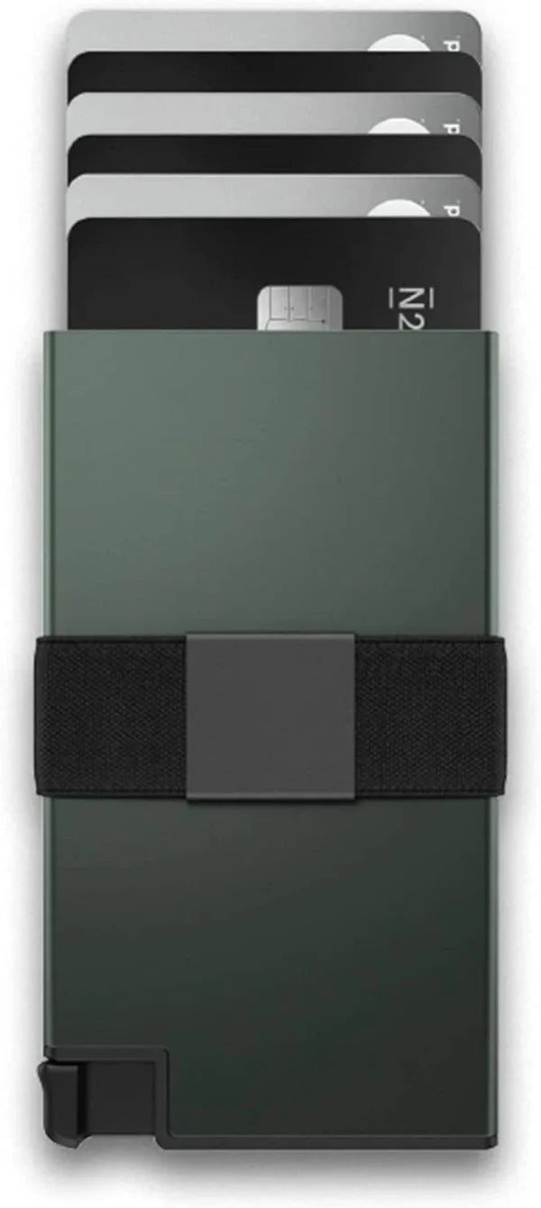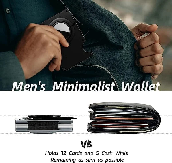 Looking for a space saving wallet? Store up to 12+ cards in this push button wallet, fitting 4-6 in the RFID blocking compartment and up to 6 more in the expandable backplate while keeping a slim profile. The Aluminum Cardholder quick access wallet is compact and slim without sacrificing storage space.