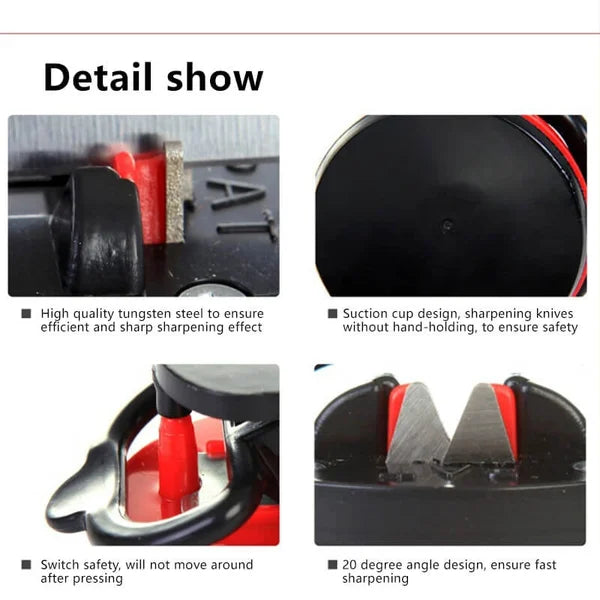 - EASY TO USE:Ā You just need to push the slot on the sharpening stone to the bottom and place it on a smooth table. It will suck very strongly on the table. Then you can start sharpening the knife. You don't need to hold it with your hands. So your hands are very safe.